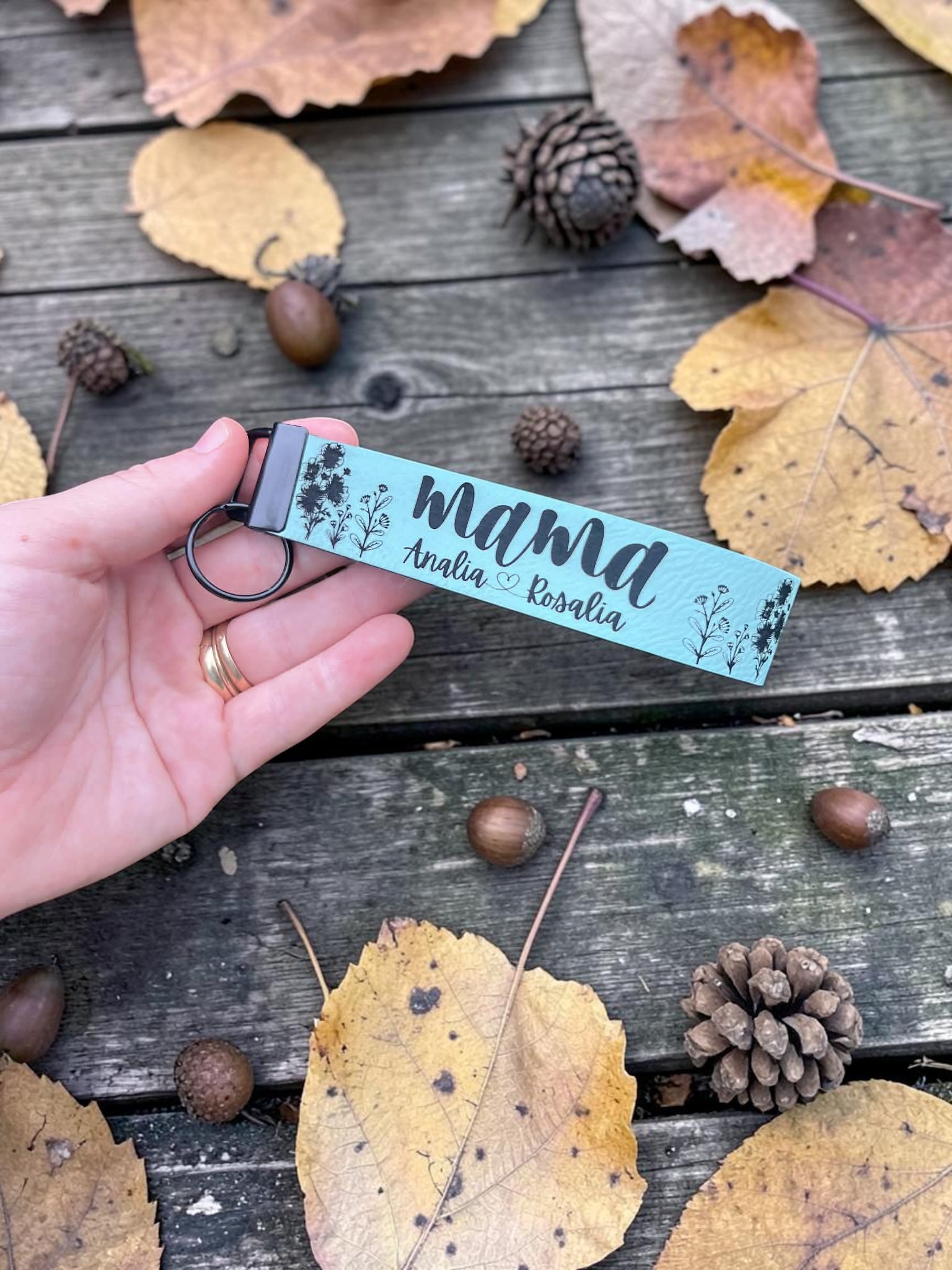This is for a BLANK leatherette wristlet. There is no hardware included. There is no engraving included. These are 10 inches by 1 inches.